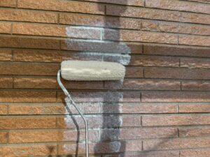 アクリル塗料を塗布する前に、防カビ・防藻効果のある下地処理剤を塗布しました。